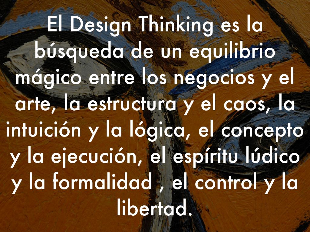 El Design Thinking es la búsqueda de un equilibrio mágico entre los negocios y el arte, la estructura y el caos, la intuición y la lógica, el concepto y la ejecución, el espíritu lúdico y la formalidad , el control y la libertad.