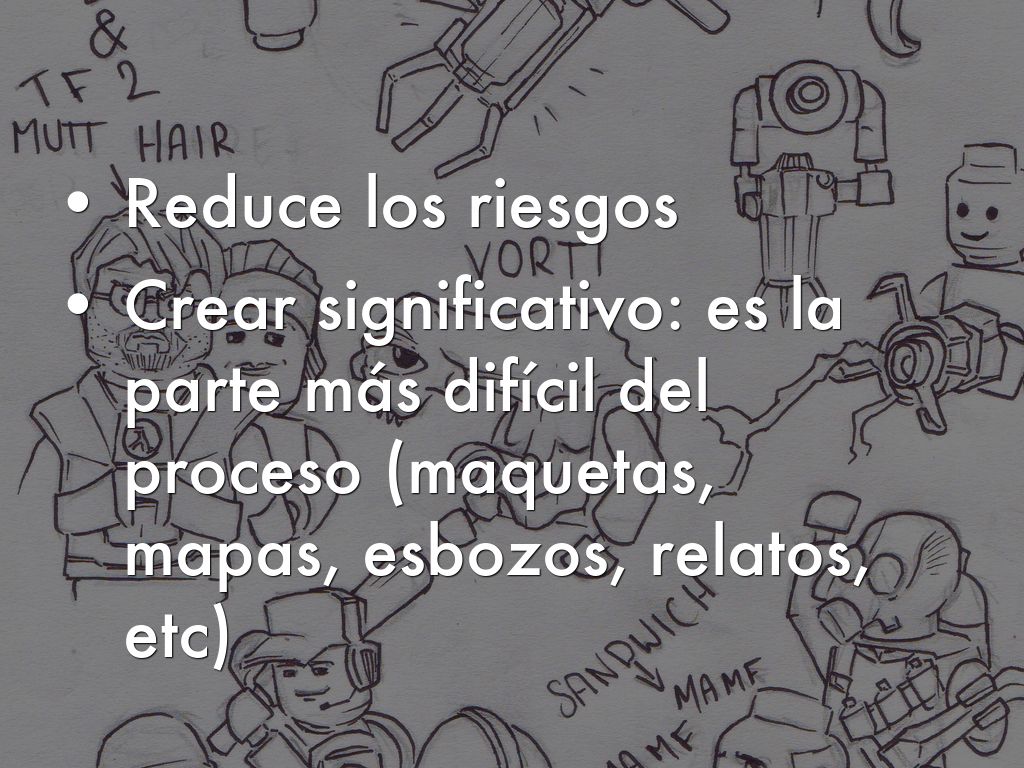 Crear significativo: es la parte más difícil del proceso (maquetas, mapas, esbozos, relatos, etc)
