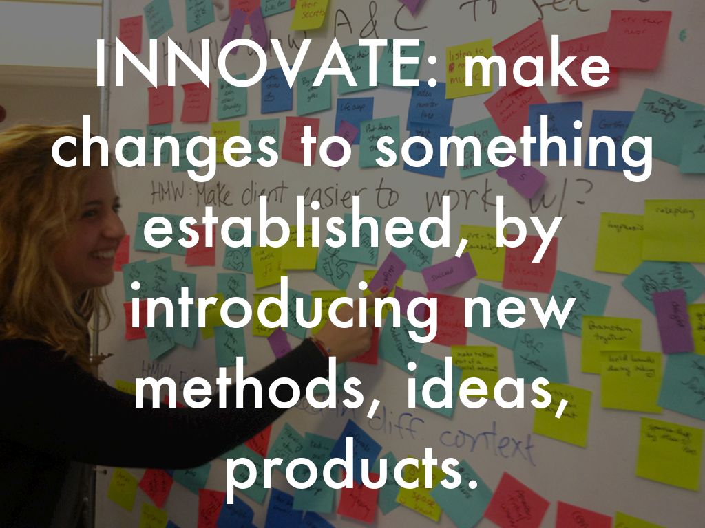 INNOVATE: make changes to something established, by introducing new methods, ideas, products.