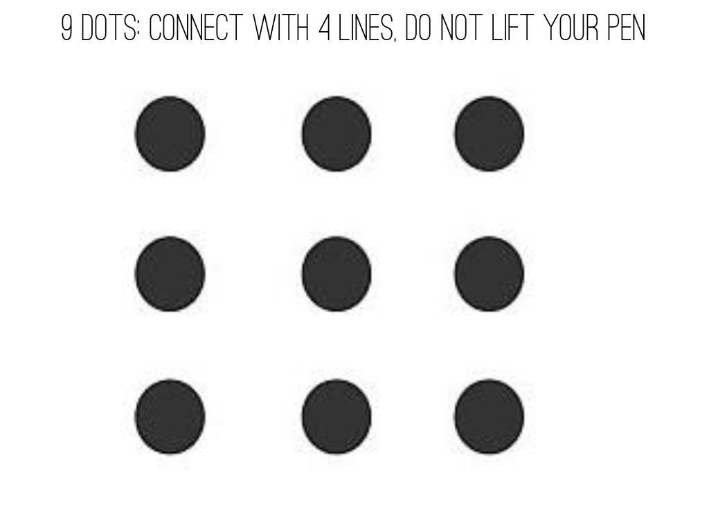 9 Dots: Connect with 4 lines, do not lift your Pen