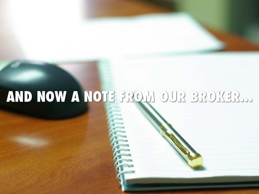 AND NOW A NOTE FROM OUR BROKER...