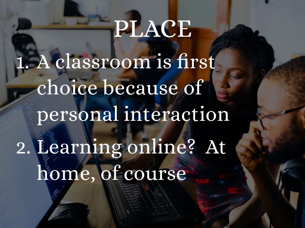 I love a one-on-one for learning. People are there to interact with and to exchange ideas.