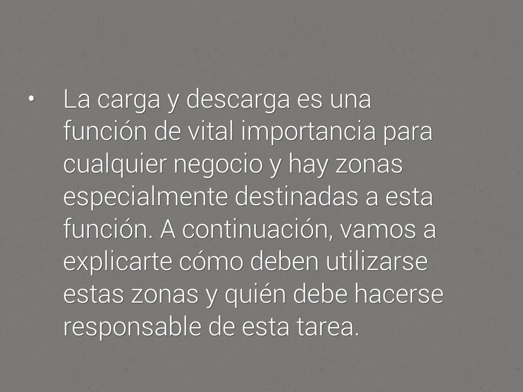 • La carga y descarga es una función de vital importancia para cualquier negocio y hay zonas especialmente destinadas a esta función. A continuación, vamos a explicarte cómo deben utilizarse estas zonas y quién debe hacerse responsable de esta tarea.