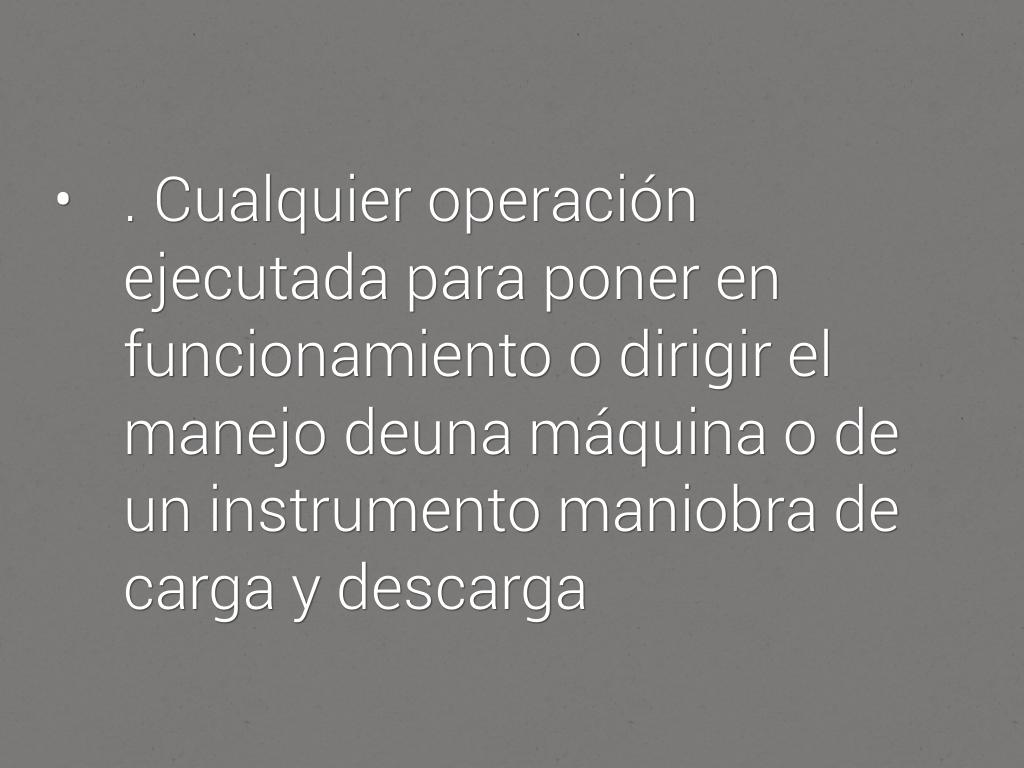 • . Cualquier operación ejecutada para poner en funcionamiento o dirigir el manejo deuna máquina o de un instrumento maniobra de carga y descarga