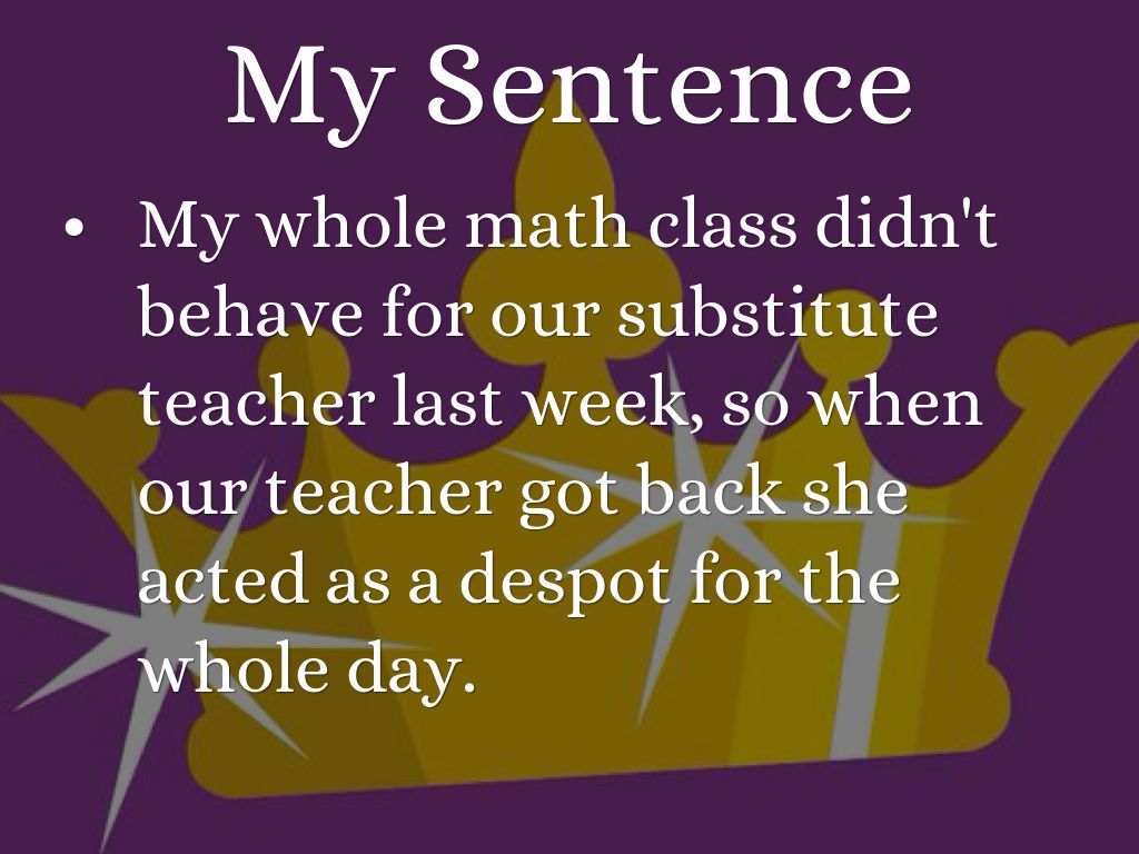 My whole math class didn't behave for our substitute teacher last week, so when our teacher got back she acted as a despot for the whole day.