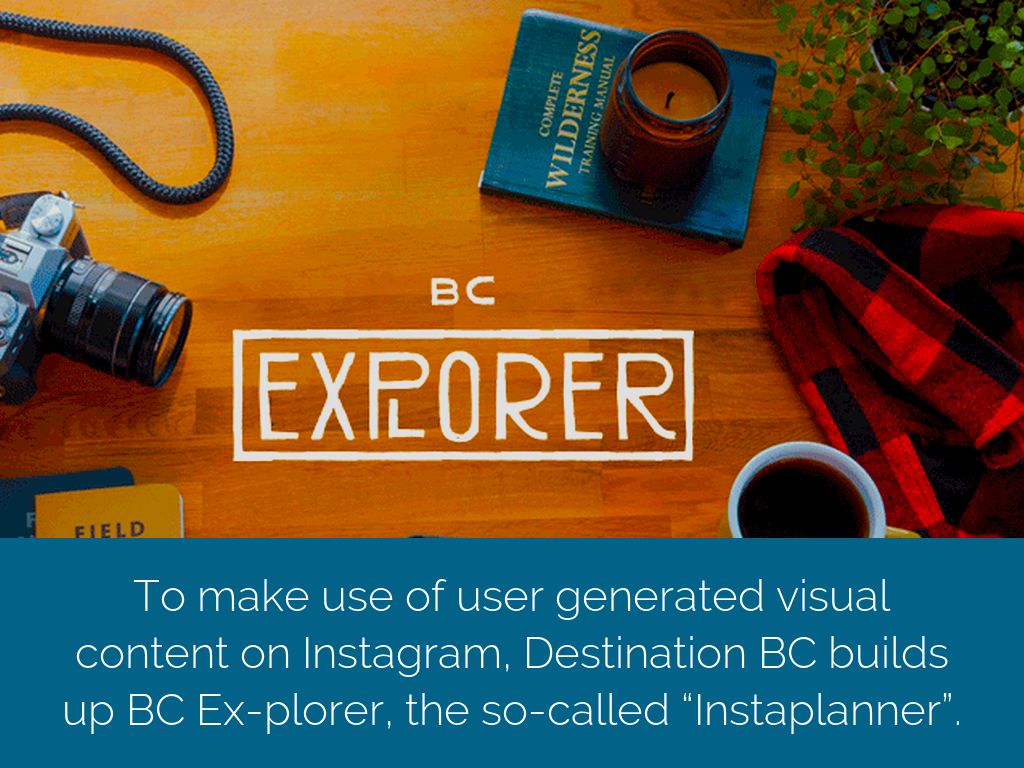To make use of user generated visual content on Instagram, Destination BC builds up BC Ex-plorer, the so-called “Instaplanner”.