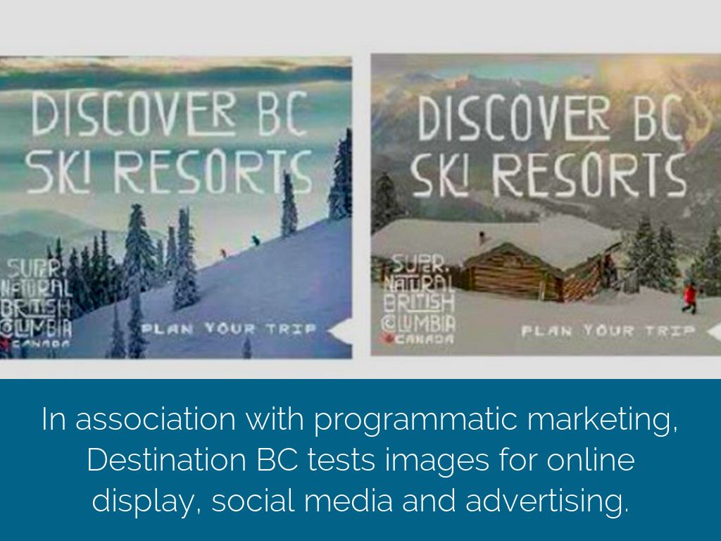In association with programmatic marketing, Destination BC tests images for online display, social media and advertising.