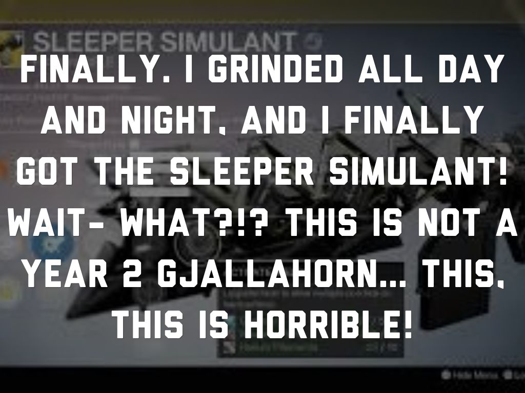 Finally. I grinded all day and night, and i finally got the sleeper simulant! wait- what?!? this is not a year 2 gjallahorn... this, this is horrible!