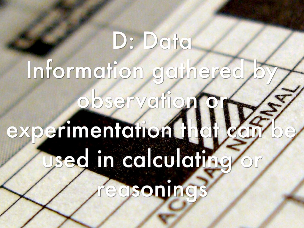 Information gathered by observation or experimentation that can be used in calculating or reasonings