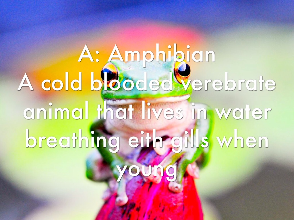 A cold blooded verebrate animal that lives in water breathing eith gills when young
