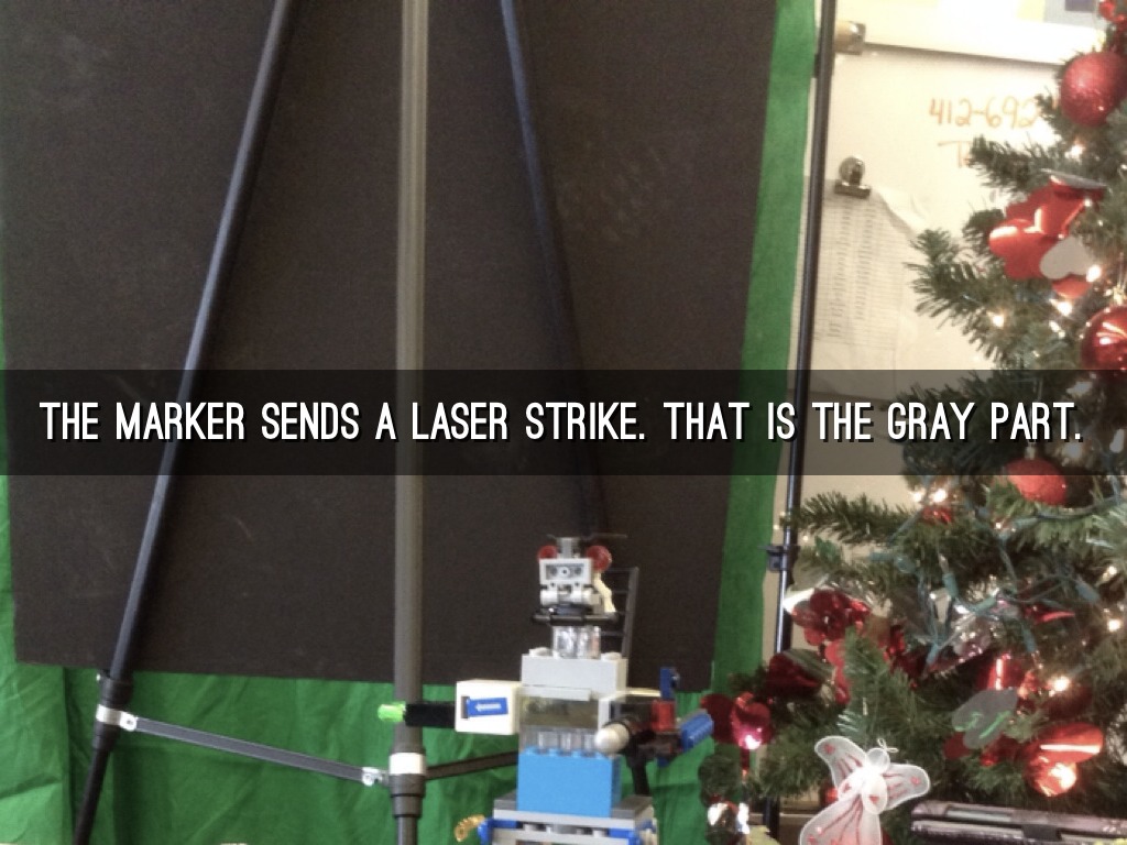 THE MARKER SENDS A LASER STRIKE. THAT IS THE GRAY PART.