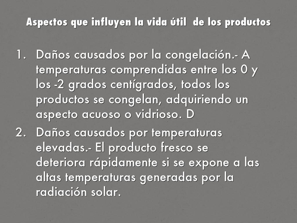 Daños causados por la congelación.- A temperaturas comprendidas entre los 0 y los -2 grados centígrados, todos los productos se congelan, adquiriendo un aspecto acuoso o vidrioso. D