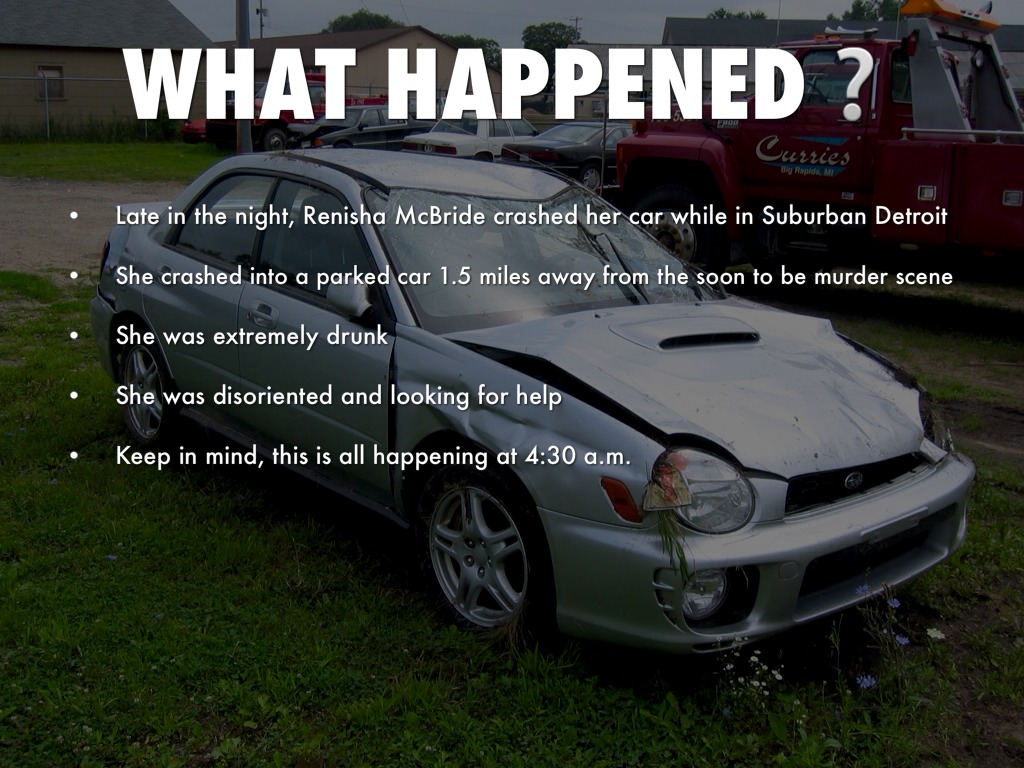 Late in the night, Renisha McBride crashed her car while in Suburban Detroit