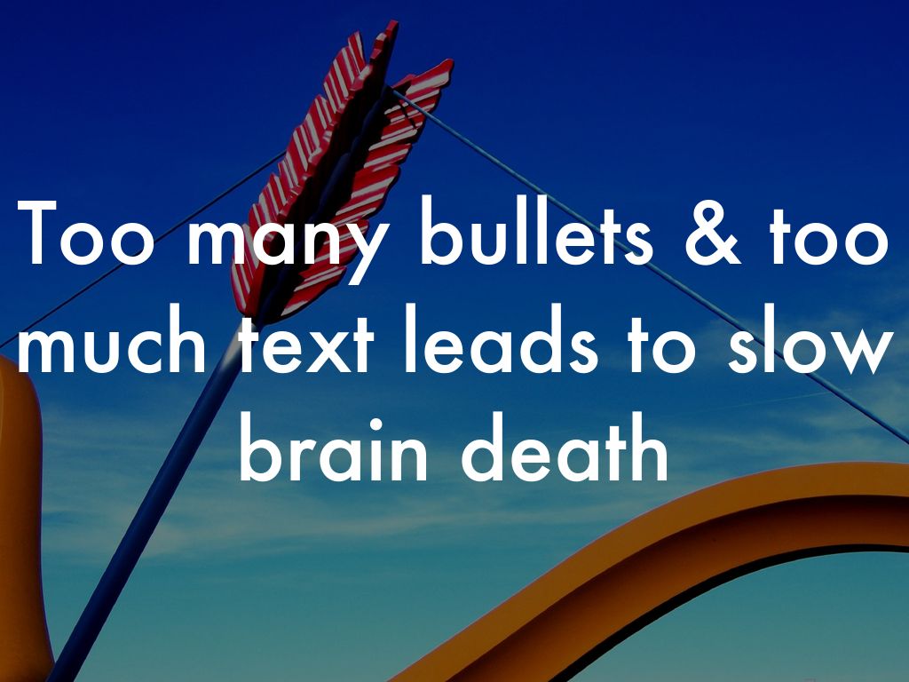Too many bullets & too much text leads to slow brain death