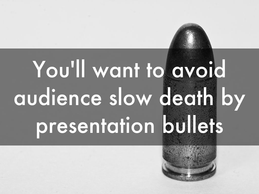 You'll want to avoid audience slow death by presentation bullets