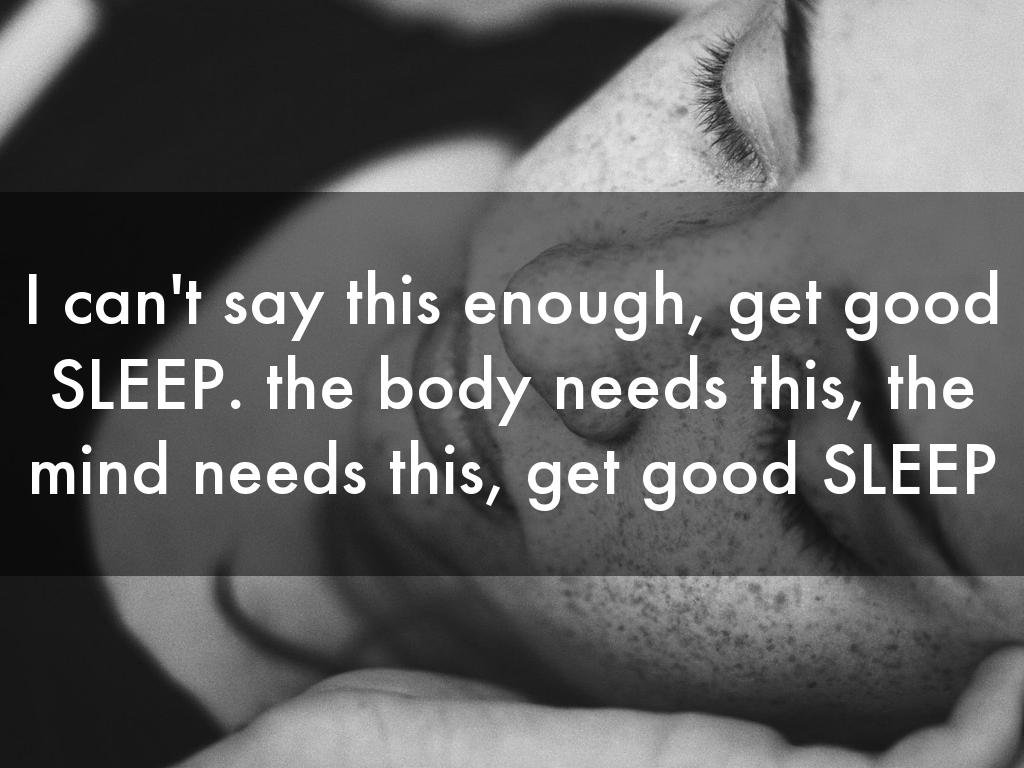 I can't say this enough, get good SLEEP. the body needs this, the mind needs this, get good SLEEP