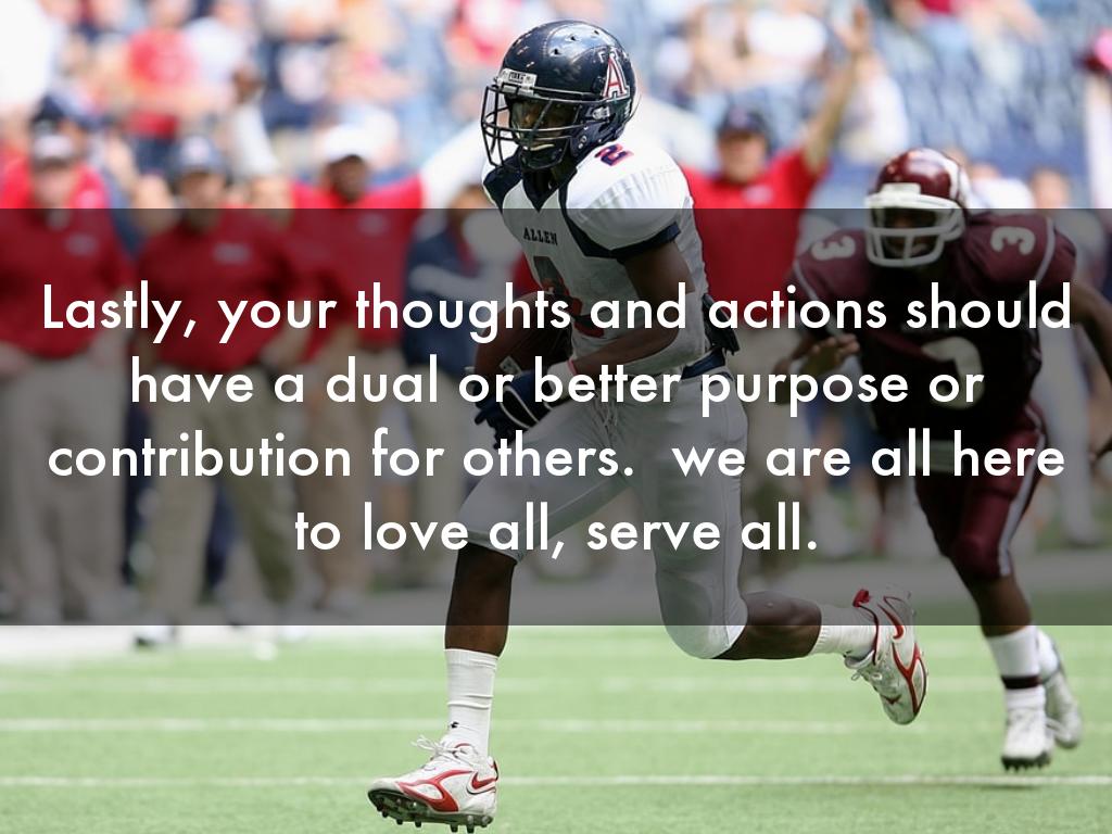 Lastly, your thoughts and actions should have a dual or better purpose or contribution for others. we are all here to love all, serve all.