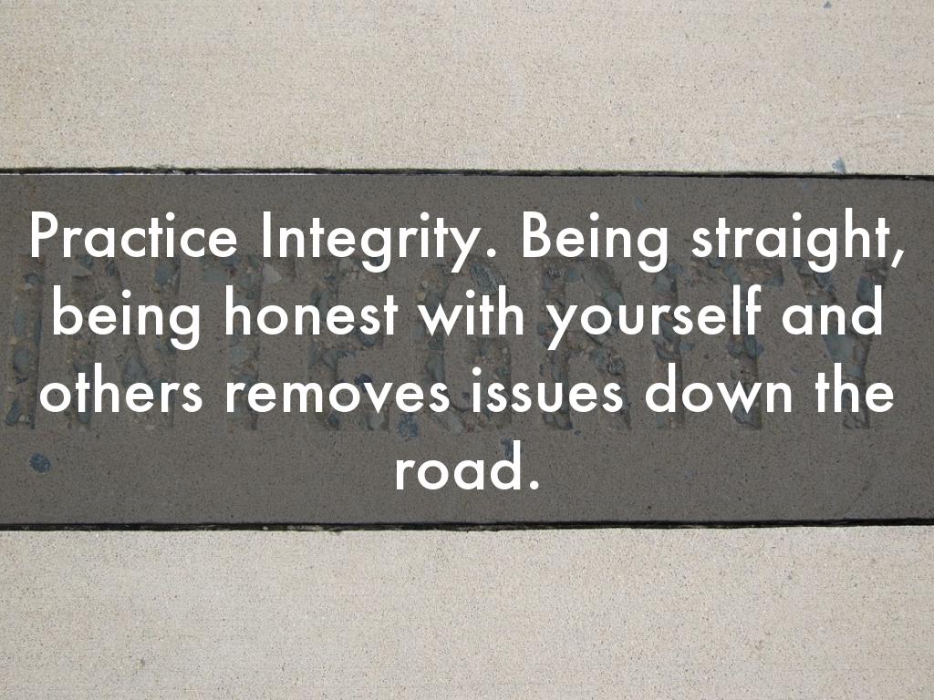 Practice Integrity. Being straight, being honest with yourself and others removes issues down the road.