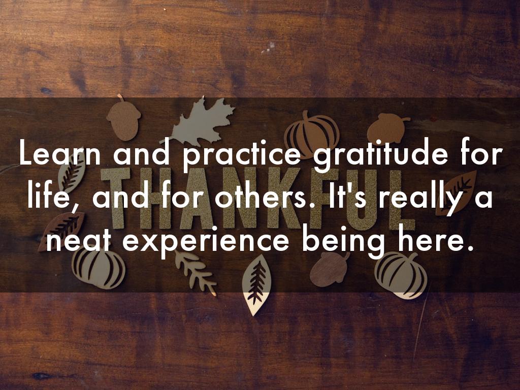 Learn and practice gratitude for life, and for others. It's really a neat experience being here.