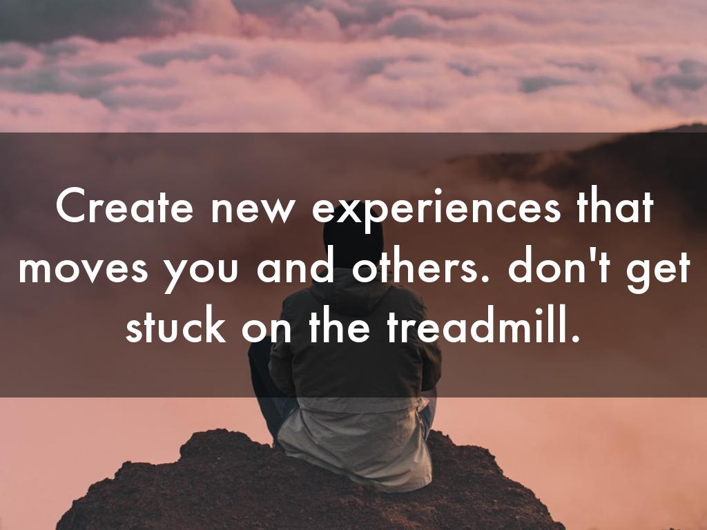Create new experiences that moves you and others. don't get stuck on the treadmill.