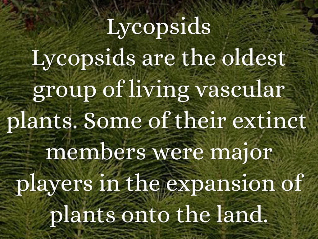 Lycopsids are the oldest group of living vascular plants. Some of their extinct members were major players in the expansion of plants onto the land.