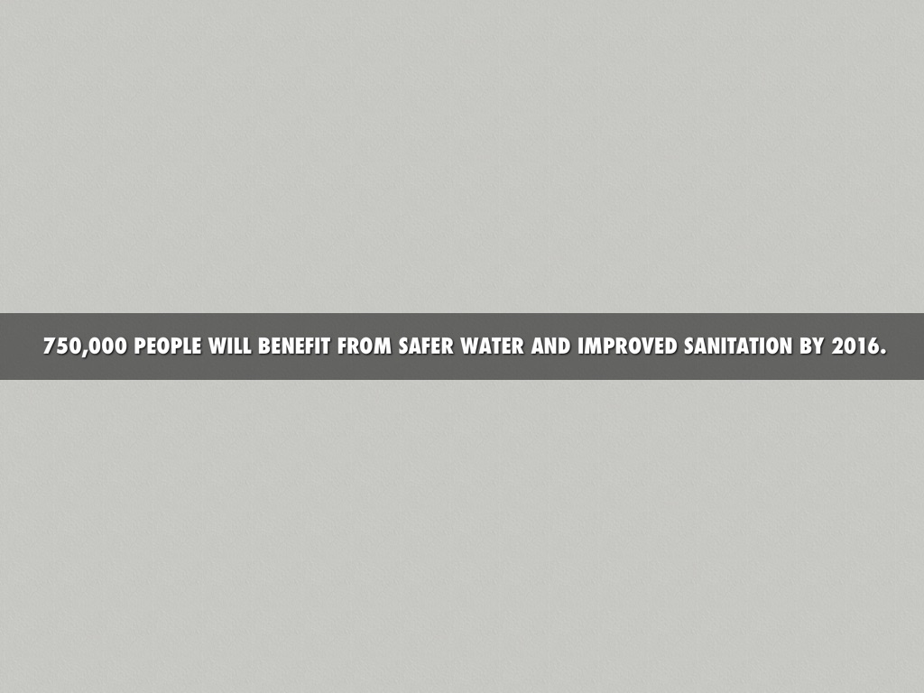 750,000 PEOPLE WILL BENEFIT FROM SAFER WATER AND IMPROVED SANITATION BY 2016.