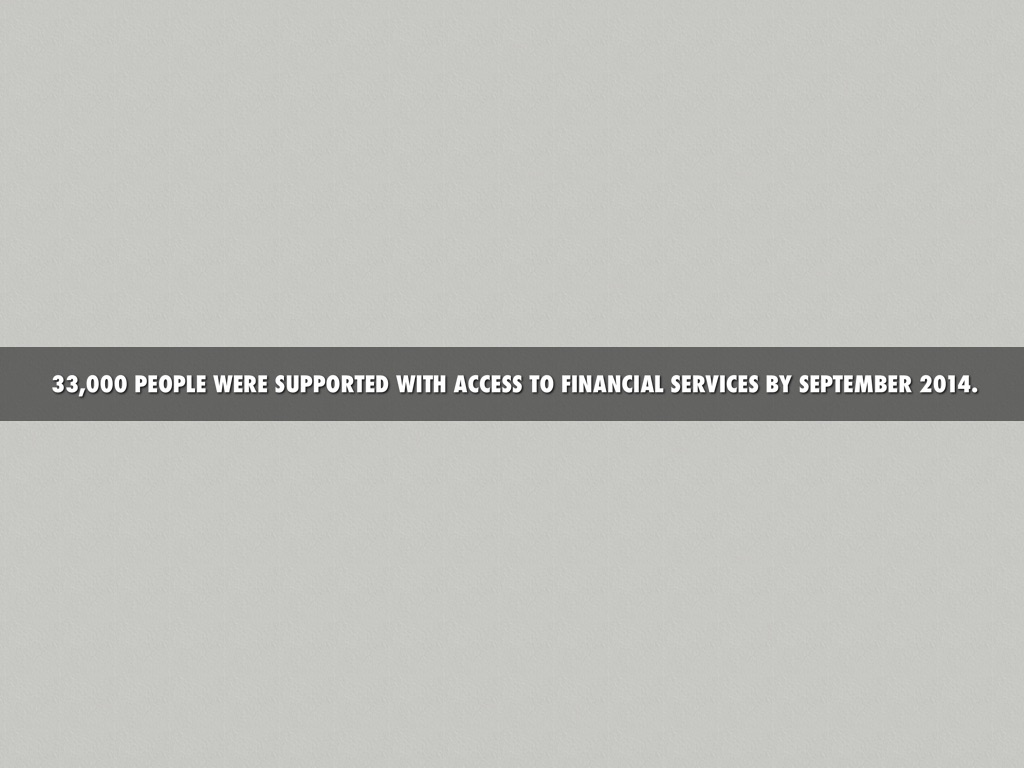 33,000 PEOPLE WERE SUPPORTED WITH ACCESS TO FINANCIAL SERVICES BY SEPTEMBER 2014.