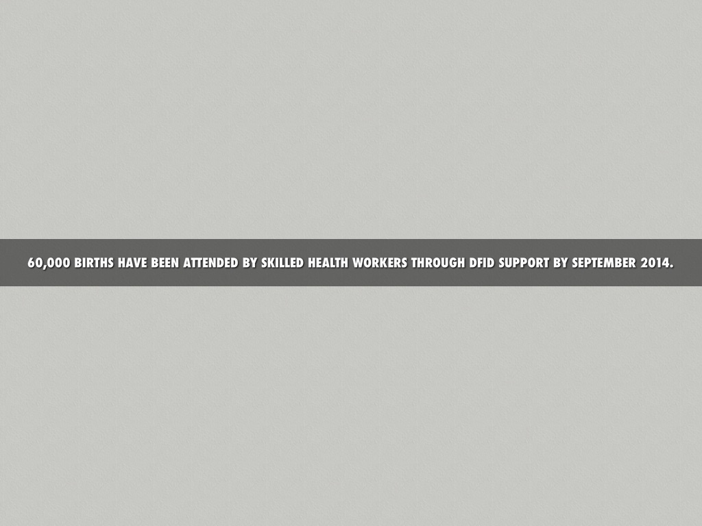 60,000 BIRTHS HAVE BEEN ATTENDED BY SKILLED HEALTH WORKERS THROUGH DFID SUPPORT BY SEPTEMBER 2014.