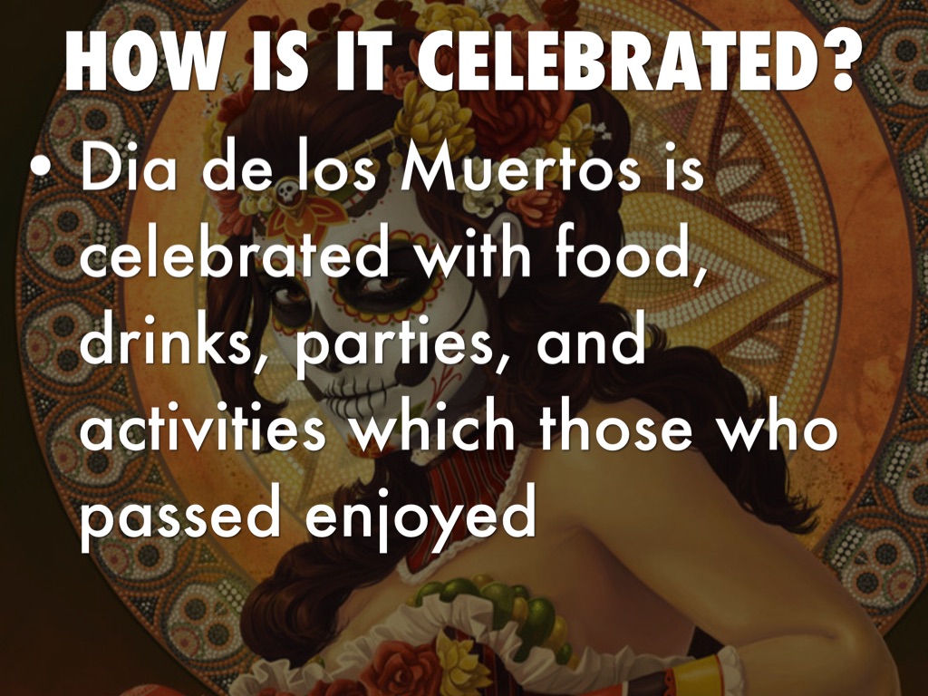 Dia de los Muertos is celebrated with food, drinks, parties, and activities which those who passed enjoyed