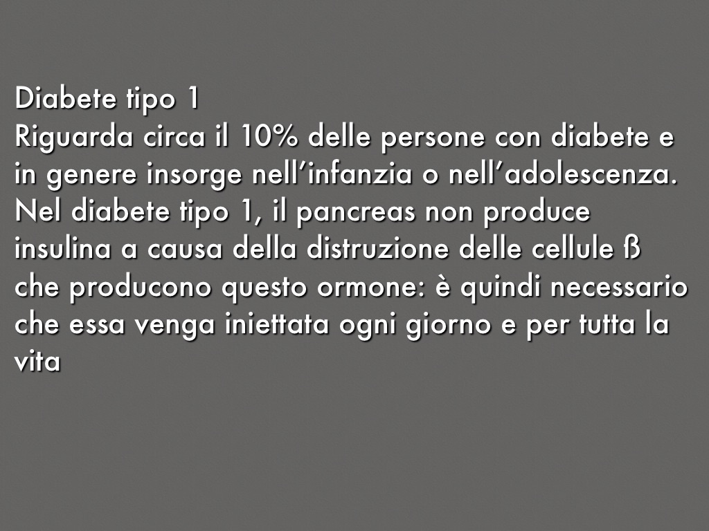 Riguarda circa il 10% delle persone con diabete e in genere insorge nell’infanzia o nell’adolescenza.