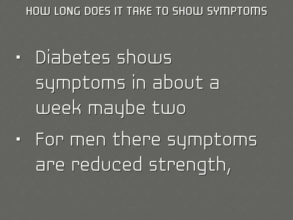• Diabetes shows symptoms in about a week maybe two