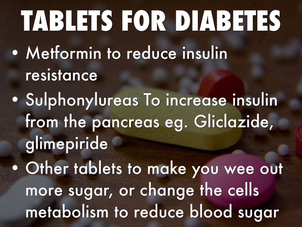 Other tablets to make you wee out more sugar, or change the cells metabolism to reduce blood sugar
