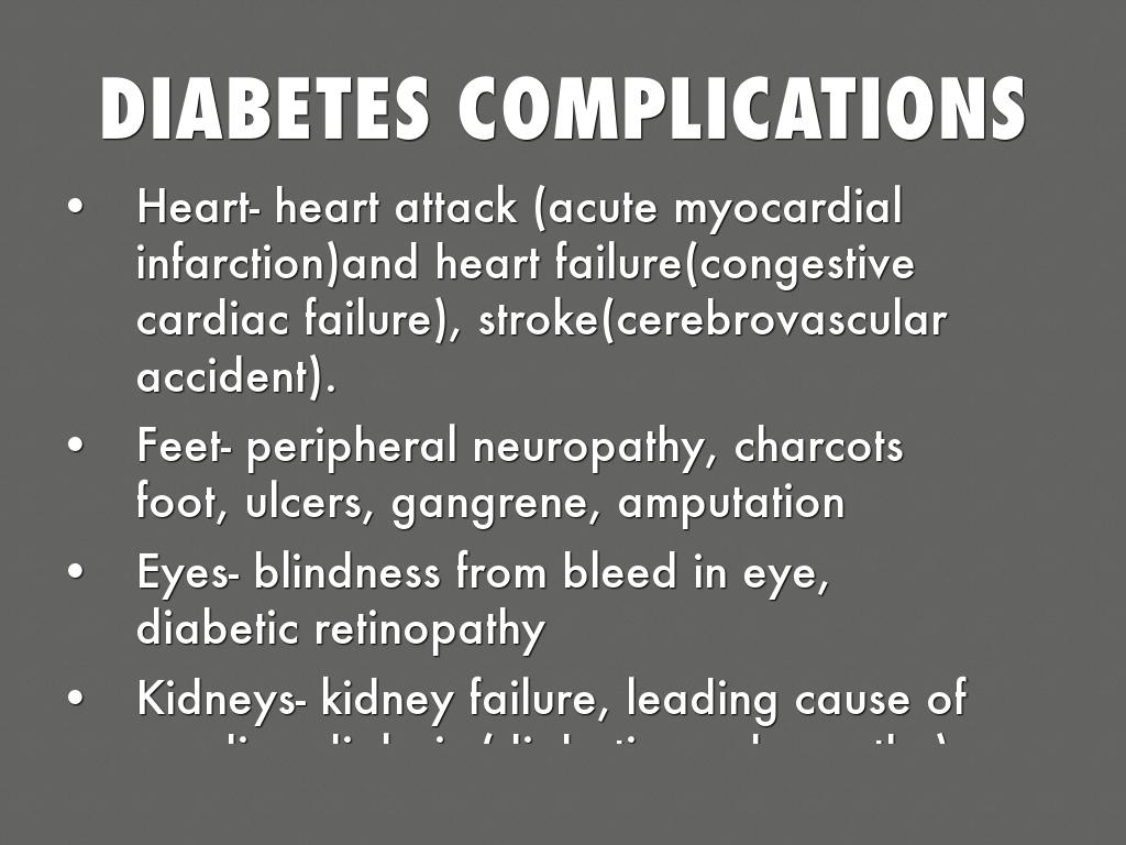 Kidneys- kidney failure, leading cause of needing dialysis (diabetic nephropathy)
