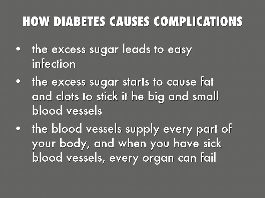 the excess sugar starts to cause fat and clots to stick it he big and small blood vessels