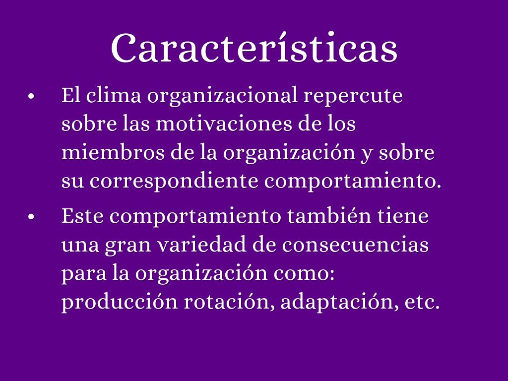 • El clima organizacional repercute sobre las motivaciones de los miembros de la organización y sobre su correspondiente comportamiento.