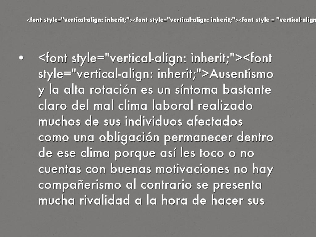 - Ausentismo y la alta rotación es un síntoma bastante claro del mal clima laboral realizado muchos de sus individuos afectados como una obligación permanecer dentro de ese clima porque así les toco o no cuentas con buenas motivaciones no hay compañerismo al contrario se presenta mucha rivalidad a la hora de hacer sus labores, en esta parte se deben realizar diversos cuestionarios donde arrojen respuestas concretas para verificar las dificultades están presentes en las áreas de trabajo.