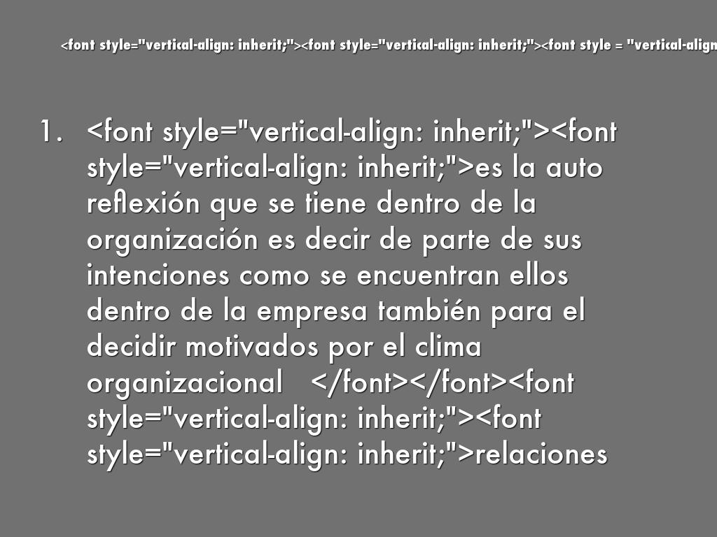 - es la auto reflexión que se tiene dentro de la organización es decir de parte de sus intenciones como se encuentran ellos dentro de la empresa también para el decidir motivados por el clima organizacional