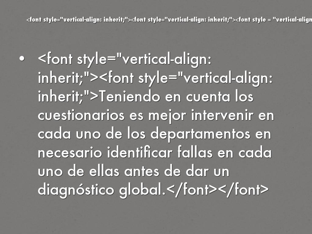 - Teniendo en cuenta los cuestionarios es mejor intervenir en cada uno de los departamentos en necesario identificar fallas en cada uno de ellas antes de dar un diagnóstico global.