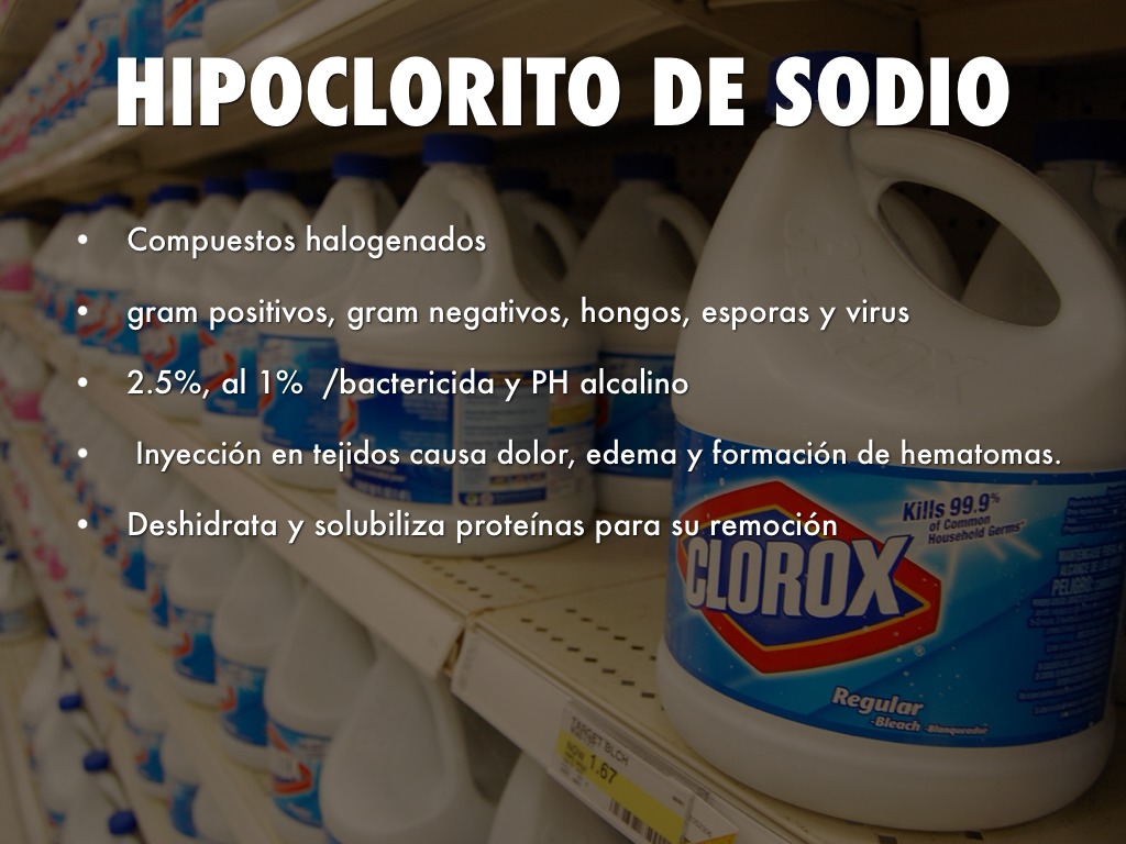 2.5%, al 1% /bactericida y PH alcalino