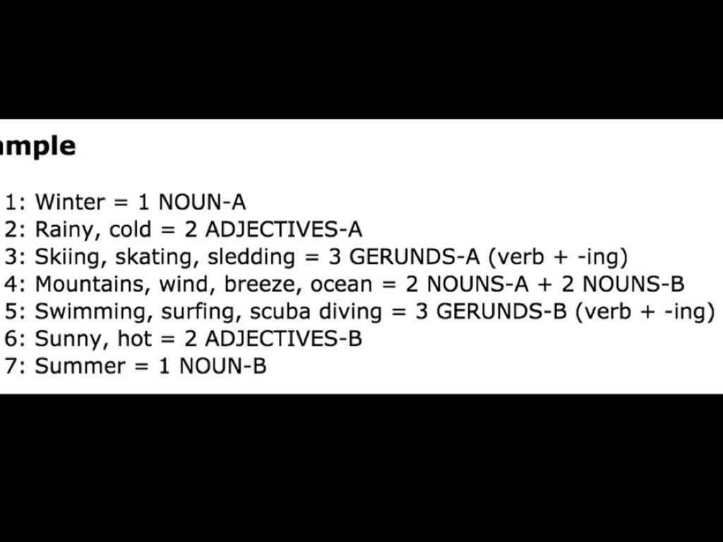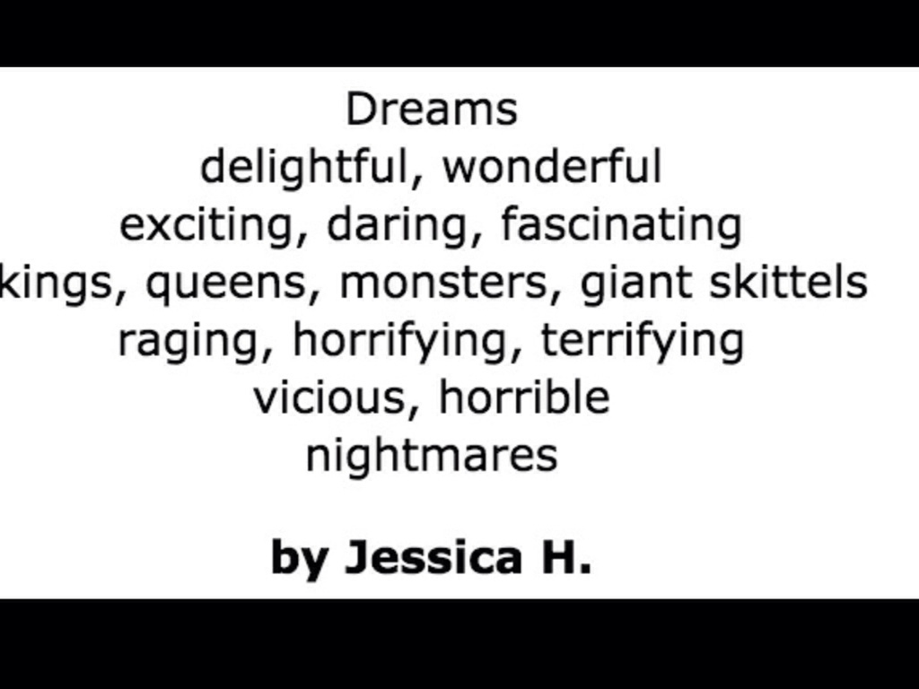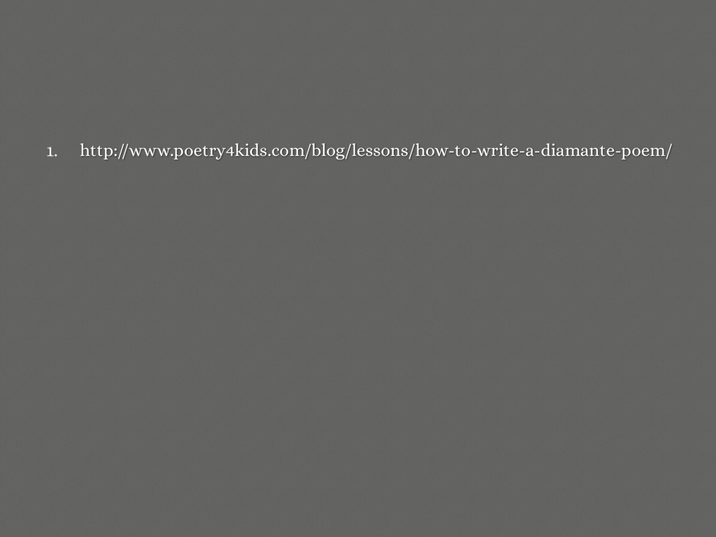 A diamante – pronounced dee-uh-MAHN-tay – is an unrhymed seven-line poem. The beginning and ending lines are the shortest, while the lines in the middle are longer, giving diamante poems a diamond shape. “Diamante” is the Italian word for diamond, so this poetic form is named for this diamond shape.