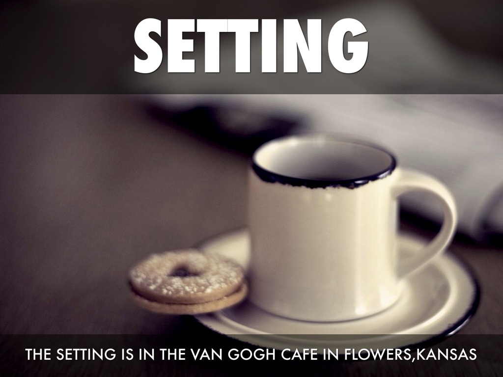 THE SETTING IS IN THE VAN GOGH CAFE IN FLOWERS,KANSAS