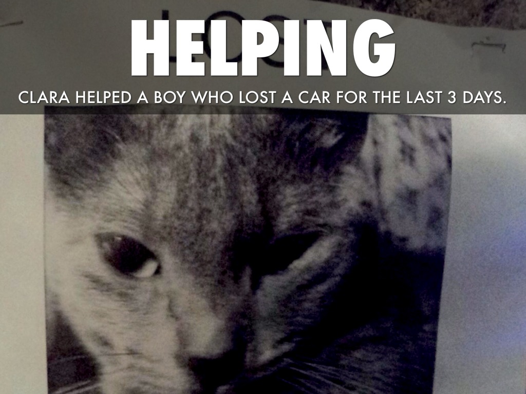 CLARA HELPED A BOY WHO LOST A CAR FOR THE LAST 3 DAYS.