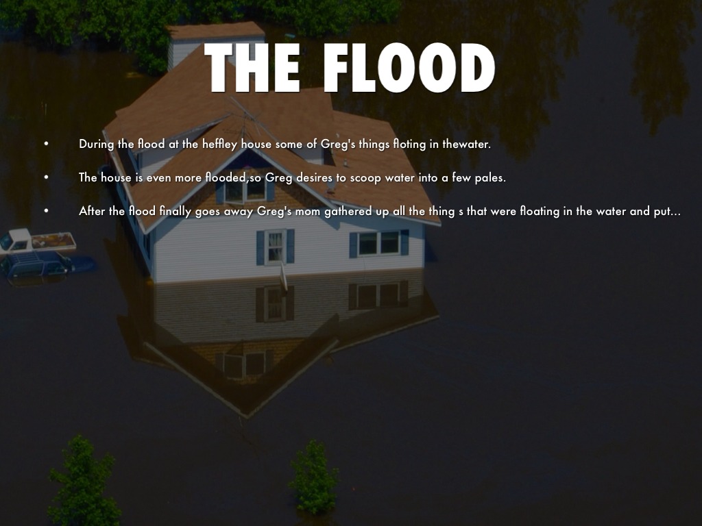 During the flood at the heffley house some of Greg's things floting in thewater.