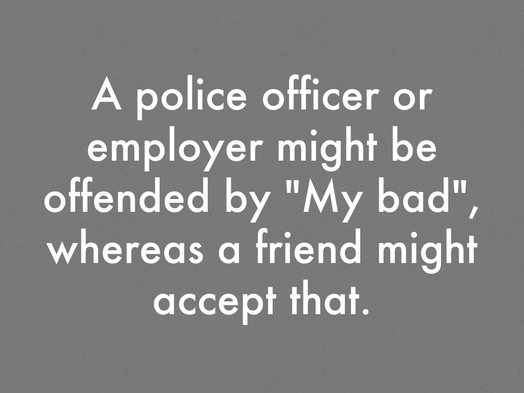 A police officer or employer might be offended by "My bad", whereas a friend might accept that.