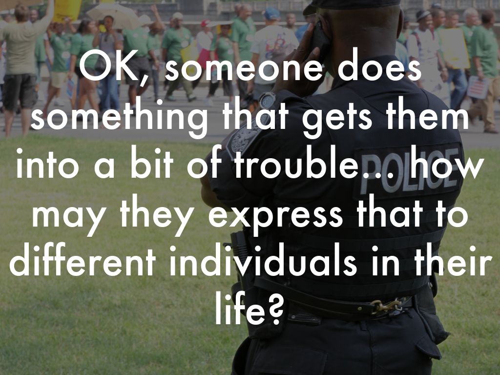 OK, someone does something that gets them into a bit of trouble... how may they express that to different individuals in their life?