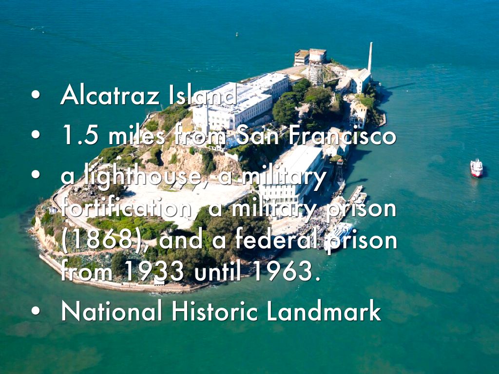 • a lighthouse, a military fortification, a military prison (1868), and a federal prison from 1933 until 1963.