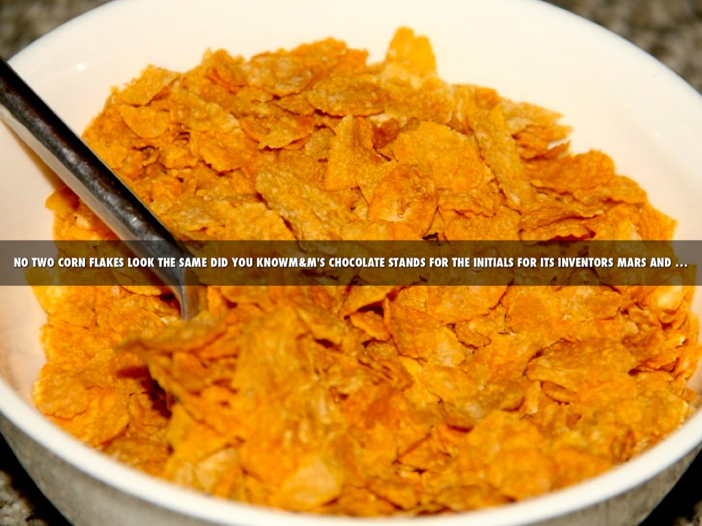 no two corn flakes look the same Did you knowM&M's chocolate stands for the initials for its inventors Mars and Murrie