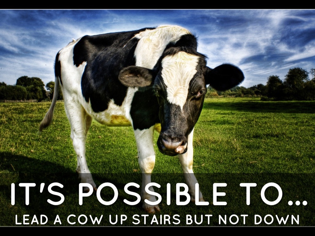 LEAD A COW UP STAIRS BUT NOT DOWN
