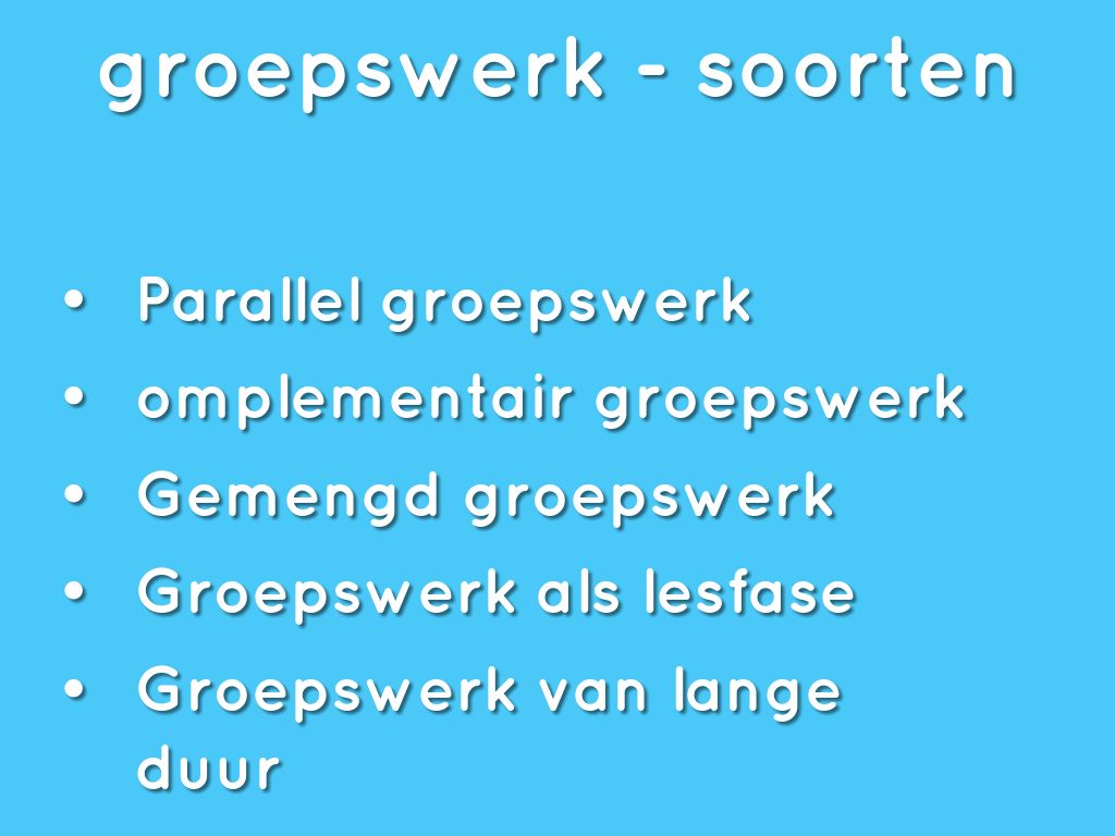 groepswerk - soorten