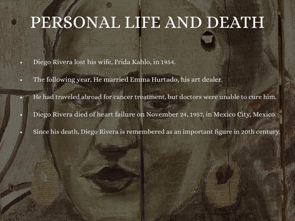 Diego Rivera died of heart failure on November 24, 1957, in Mexico City, Mexico.